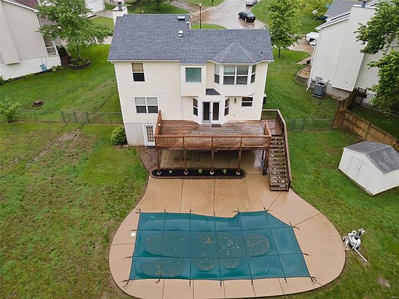 IN-GROUND POOL!! 3 bedroom, 3 ½ bath home nestled on a quiet cul-de-sac, backing to trees. Enjoy your morning coffee on the wrap around front porch. Move in ready with new carpet & fresh paint. Great Room offers hardwood floors & a wood burning fireplace. The Kitchen & Breakfast Room boast ample cabinet space, bay window, stainless appliances, silestone counters, backsplash, gas range, & refrigerator to stay. The main floor also offers a Powder Room & a separate Dining Area. Upstairs: Master Suite has a bay window, & private bath with a garden tub. There are 2 more nice sized Bedrooms & a hall Bath. The walk out LL has a large Recreation Room, a full Bath, Laundry area, & storage space. The IN-GROUND POOL, large deck & fenced back yard is ready for BBQ's & perfect for entertaining! Recent updates: dishwasher, driveway, gas range, & humidifier - there is a solar powered attic gable vent fan, security system, drywalled garage & double water filtration system. Agent is related to Sellers