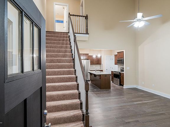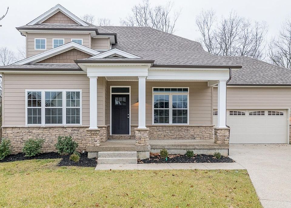 This tuscany style home features hardie board exterior siding with stone and shaker accents. It has 5 bedrooms (1st-floor master), 3.5 bathrooms, finished daylight basement with egress windows and a 2 car attached garage. Hardwood floors in the living room, kitchen, and half bath. Covered rear deck. Granite counters in the kitchen. Tile in the baths. Catalpa Farms is a newer community connected to the Shakes Run Community on Eastwood Fisherville Road and will eventually have its own entrance off of Clark Station at Taylorsville Road. Catalpa Farms will share the Shakes Run pool and clubhouse until the Catalpa Farms amenities are put in place. This home is at the end of a small cul-de-sac and has a beautiful lot that backs up to a wooded area.