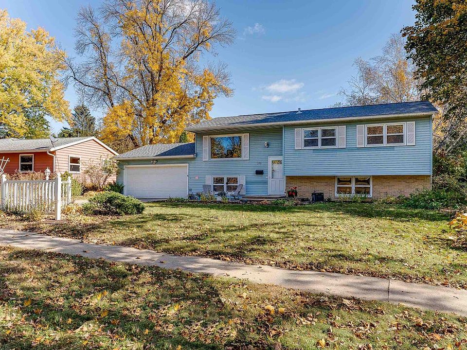 Beautifully maintained, open-concept split-level home located on a quiet street near schools, parks + shopping. This home offers multiple living spaces, including great room, den/library, plus downstairs family room w/large gas fireplace + solid brick surround + bamboo floors throughout. Enjoy formal dining or casual meals in the breakfast nook. The 3-season porch is perfect for cozy moments overlooking mature trees, gardens + wood pergola in the fully fenced backyard. The attached 2-car garage opens into a mudroom w/bonus workroom. Ample storage includes 2 closets in primary, large storage in kitchen island, 2 linen closets, storage understairs AND separate laundry/utility room + pantry space. Extras include Leaf Filter gutter protectors and a new roof. Home Warranty included!