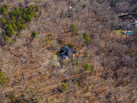 THE VIRTUAL TOUR FEATURES A 3-D WALK-THROUGH TOUR. Sitting on 3 wooded acres of land is this private, custom home tucked away on a cul-de-sac lot! Features include open floorplan, 2 story living room, a wet-bar in the formal dining room, see-through fireplace between kitchen and living room, 3 oversized bedrooms, two of which are master suites, all with en-suite bathrooms and balconies off the upstairs suites, every room has sliding glass doors for plenty of light, second-floor laundry chute, an exceptional number of closets and storage space, walk-out basement with a workshop, 3 car garage with air compressor system and security/intercom system. The outdoors features a firepit, tree-lined stream, and rolling hills. No HOA!