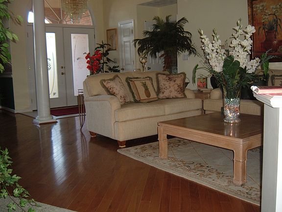 Custom built brick, 3 car garage. Cathedral ceilings in living room and kitchen, vaulted tray in dining room. Master bath has 5' round window, with his and hers vanities, large walk in shower, jetted tub, spacious walk-in closet. Kitchen has double oven, granite counter tops, tile back splash. Wood floors in living room and dining room. Peach Tree sliding doors in family and master bedroom. Laundry room has lots of cabinets. Ceiling fans in all bedrooms. Includes window treatments. Automatic sprinkler system, with natural privacy hedge surrounding backyard. New A/C in 2001 and roof 6 years old. A MUST SEE house.