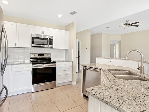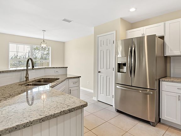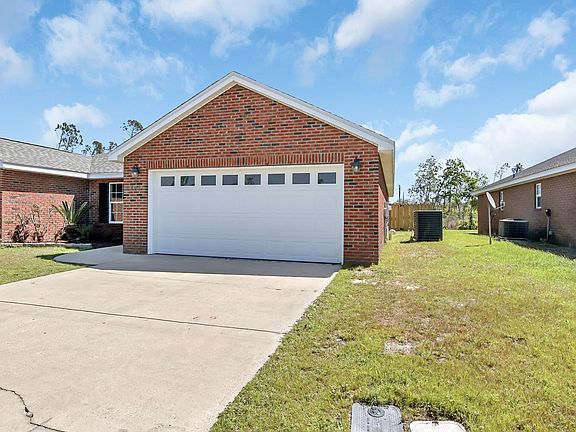 Back on the market! Camryn's Crossing Subdivision has underground utilities, sidewalks, in a beautiful setting conveniently located in Lynn Haven. This 4 bedroom, all brick home has updates that include a brand new kitchen, granite countertops, cabinets, stainless steel appliances, and backsplash. New carpet in bedrooms, all new paint throughout, vinyl planking in hallway, foyer and dining room, and new fixtures. The spacious, tiled, living room has an electric fireplace and shiplap wall with a natural wood mantel. It is tiled and open to the new kitchen. There is a breakfast bar, breakfast nook with room for a table and a separate dining room. This is a split bedroom floor plan with Master on one end and the additional 3 bedrooms are down the hall. The back porch is covered and tiled....