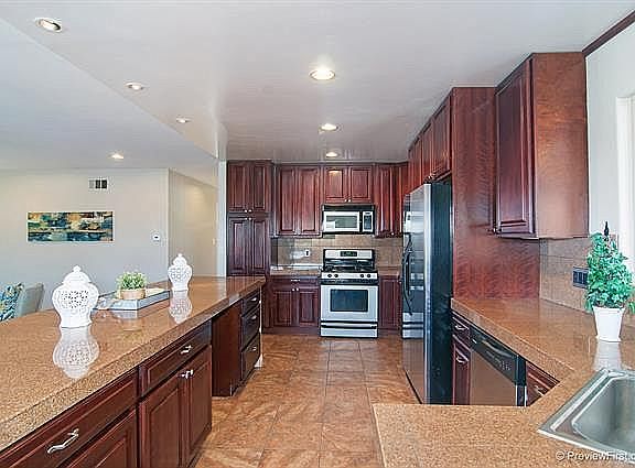 Upgrades include; Thomasville Kitchen cabinets, granite tile countertops, stainless steel appliances, newer windows, bath cabinets, dishwasher,recessed lighting, ceiling fans throughout. tile flooring, tile shower/bath walls. New Laminate wood flooring, carpet, mirrored wardrobe doors, paint interior and exterior, doors, casings knobs, handles, baseboards, outlets, switches, medicine cabinet, mirror, bathroom light fixtures, bedroom sconces and exterior lights, faucet, garbage disposal. House is also plumbed for second oven, prewired for speakers in family room, garage and exterior back.