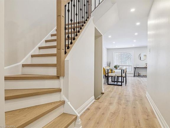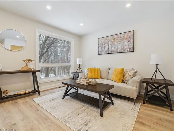 This beautifully renovated 3-bedroom, 4-bathroom townhome boasts a finished walk-out basement and is perfectly situated with a tranquil forest backdrop. The home has been completely updated throughout, starting with a grand entrance featuring a modern hall tree, complete with a bench, storage, and hooks for added convenience. Main floor features smooth ceiling throughout. The spacious living room showcases elegant laminate flooring, pot lights, and two large windows offering peaceful views of the surrounding forest. The adjoining dining room, also with laminate flooring and pot lights, creates an open and inviting space that flows seamlessly with the living area.The kitchen has been completely transformed, offering generous cabinetry, quartz countertops, a stylish backsplash, and brand-new stainless steel appliances—ideal for both cooking and entertaining. New staircase with sleek pickets leads to the upper level, where you'll find three generously-sized bedrooms. The primary bedroom is a true retreat, featuring a convenient 2-piece ensuite and a walk-in closet. An expansive 5-piece bathroom completes this level.The finished walk-out basement is a standout feature, with a large recreation room that opens to a private deck. This level also includes a 3-piece bathroom, a separate laundry room, and additional storage space.This stunning home, blending modern updates with natural beauty, is a rare find and one you won’t want to miss! Condo fees include water, internet, cable, common elements and building insurance