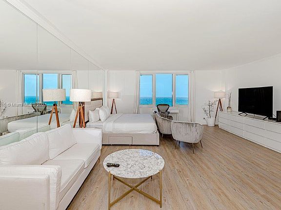 Gorgeous oceanfront studio with views overlooking the ocean and 1 Hotel pool. Updated with a full kitchen. Fully furnished in a modern, clean, beach house aesthetic. Electricity, cable, WiFi, water and valet with 1 parking spot included. Laundry room on every floor. Roney Palace Amenities Situated inside the same building as the luxurious 1 Hotel, Roney Palace residents enjoy the best of South Beach with access to 3 oceanfront swimming pools, a hot tub and beach service. Pricing is dynamic and may vary according to seasonal demand, lease commencement date, and lease term. Please contact listing agent for current availability and pricing Valet parking, full-time security, laundry on every floor, onsite management office. Copyright Miami Association of Realtors Regional MLS. All rights reserved. Information is deemed reliable but not guaranteed.