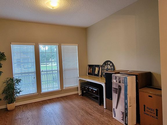 Great open floor plan, formal living room amd dining room, primary bedroom is downstairs. Large kitchen open to family room and breakfast nook. Vaulted ceilings. Walk out to a covered patio. Primary bedroom has tray ceiling, bathroom has large marble garden tub, walk in shower and double sinks. Upstairs has 3 large bedrooms plus bathroom.