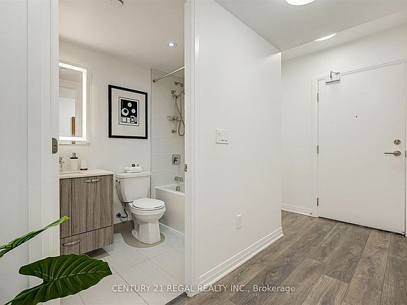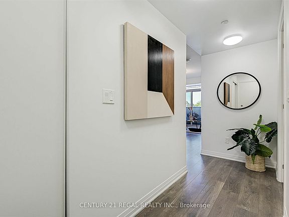 Come and enjoy exclusive boutique living at Canvas Condos! Only 8 storeys up and built in 2020, this stylish low rise building offers exceptional urban conveniences while providing cozy, modern day comforts to its residents. The unit is a thoughtfully designed 2 bedrm, 2 bath with parking and locker included. Right when you step inside, there is a feeling of home with a foyer, double entry closet and ensuite laundry upon entry. The open living, dining area is bright with an inviting flow into the contemporary kitchen. Kitchen has quartz countertops, undermount sink, energy efficient, stainless steel appliances and integrated dishwasher. The unit has the convenience of 2 bathrooms, one 4-piece and one primary ensuite 3-piece bathroom, both featuring bathroom mirrors with wall mounted light and full height ceramic wall tile in the tub and separate shower stall. The primary bedroom is spacious and filled with light due to floor to ceiling windows and boasts a walk in closet. The second bedroom off the kitchen with its double closet can comfortably fit a bed with side table or can be used as a roomy home office. Start your day with a morning coffee or unwind at the end of the day outside on the large balcony overlooking the Danforth from the privacy of your home. The location is hard to beat! You're steps away from the subway and surrounded by bike lanes. Out your front door are cafes, restaurants, Sobeys, gas station and trendy shops. Take a walk along nearby residential streets filled with parks, schools, and plenty of green space. This stylish building (complete with concierge, gym, bike room, party room and stunning rooftop deck) and its Danforth Ave location provide city living without sacrificing the charms of living in one of Toronto's most vibrant neighborhoods.