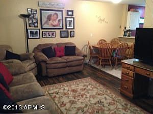 Nice 2 bed, 2 bath PLUS a den/game room in popular Mesa townhome subdivision! The dishwasher is newer! Carpet was replaced in 2012! AC was replaced in 2003! Smooth top range! Built in micro! Beautiful wood laminate floors in great room and tile in kitchen and baths! Neutral paint! Storage under stairs! Ceiling fans! Great location near community pool, lots of extra parking around unit and unit opens up to beautiful common area with green grass and shade trees! If you are an investor the current tenant would like to stay. Currently renting for $780/month. Short sale!