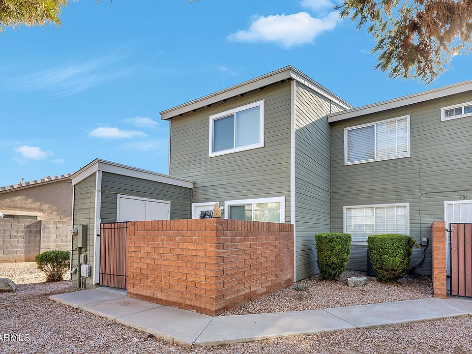 Welcome to your new home in the community of Eastbrook in Mesa! This lovely two bedroom townhome offers the perfect blend of comfort and modern style, perfect for those seeking a cozy living space with convenient amenities. The interior of the home has natural light and a neutral color palette throughout, ready for your personal touches! Both of the bathrooms feature modern cabinets and fixtures, and the vaulted ceilings on the second level ensure both bedrooms are bright & open spaces. There is a private courtyard off the entry, which would be an ideal spot for morning coffee or evening relaxation. Recent upgrades include $12K spent on brand-new windows and a front door installed in 2023, ensuring energy efficiency and enhanced curb appeal. The condo has assigned covered parking and a storage shed, providing ample space for your belongings. The Eastbrook community has two sparkling pools/spas, a clubhouse, and is conveniently located close to the US 60, offering easy access to shopping, dining, and entertainment options!