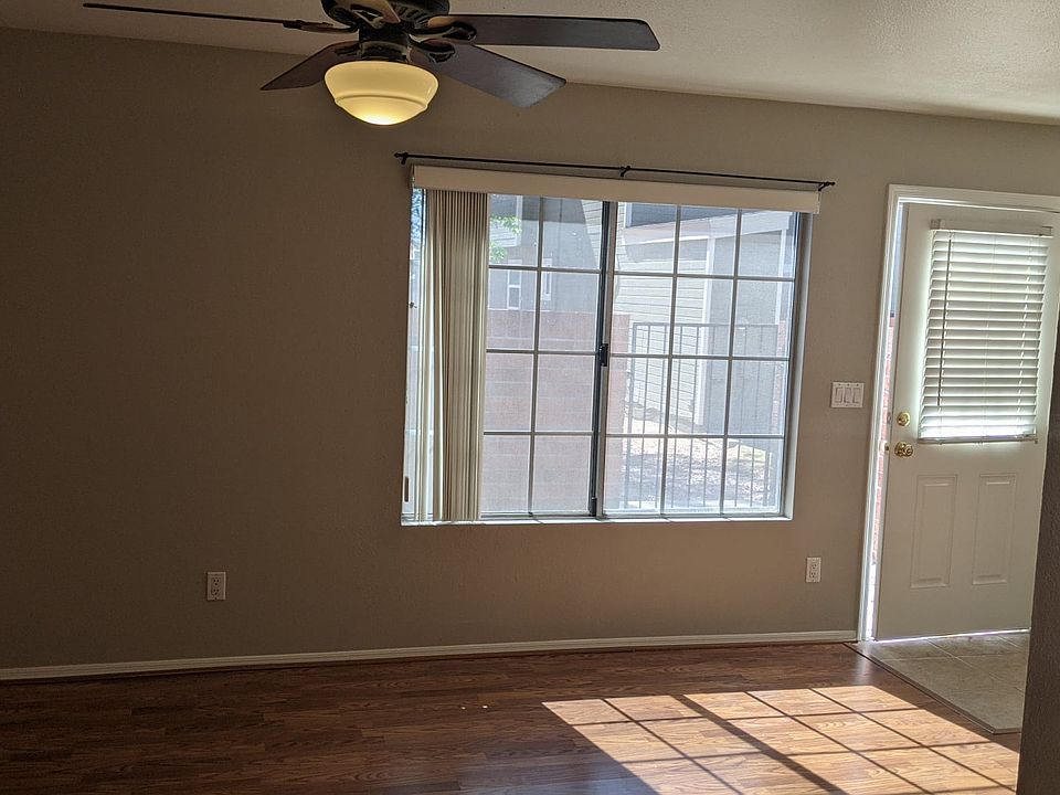 This townhouse is available for a 12-month lease. Rent is $1,760 per month, which includes water, sewer, and trash. No pets are allowed. A refundable security deposit is required. Tenants are responsible for keeping the unit in good condition. The unit comes with a stacked washer and dryer, a carport for one vehicle, and shared parking. Community amenities include two pools, hot tubs, and a playground.