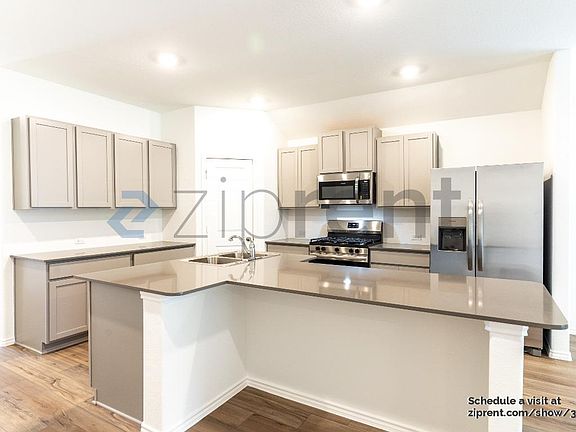 Welcome to your dream home at 2301 Four Waters Loop in the charming town of Georgetown, TX. This brand-new, single-story residence is thoughtfully designed to cater to all age groups, featuring four spacious bedrooms and a rare three-bath configuration, providing ample convenience and privacy for families or guests. The open-concept layout is highlighted by a modern kitchen equipped with all the essential appliances, designer-selected cabinetry, and solid surface countertops, making it perfect for both everyday living and entertaining. The expansive living and dining areas are flooded with natural light, thanks to dual-paned windows, creating a warm and inviting atmosphere.