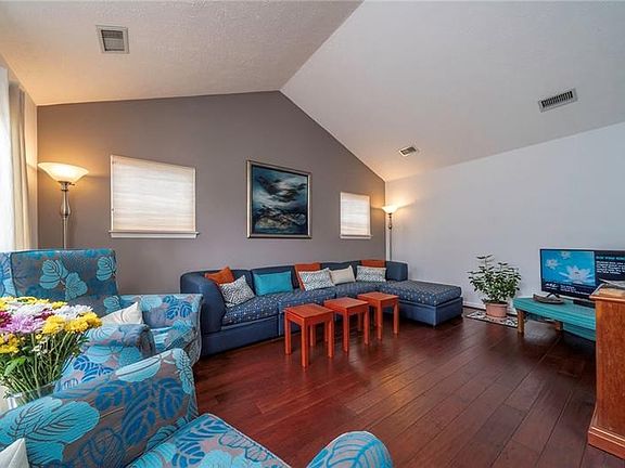 Your time has come to make the move to your forever home! 1 level living at its finest w everything you need! Flex space on the 2nd flr that can be a guest rm w W-I-C, exercise, craft, music or even a gaming rm! Dramatic cathedral ceil in the familyrm that is highlighted by loads of natural light! The dining area will accommodate your favorite furnishings & includes an architectural niche for your unique artwork! The E-I-K offers an area for a table or breakfast at the bar w loads of cabinetry, all appliances & a full pantry! Convenient laundry includes the W&D! The 1st flr owners suite is spacious & offers room for lounging, a W-I-C w full length mirrors & full bath w walk in shower! The 2nd bedroom on this level could also be a home office or sitting rm w a French door to the 18x12 Patio w a Brand New Gray Awning being installed as soon the brand new Roof is completed this Spring! A full guest Bath is easily accessible to all guests! Your cul-de-sac view is of the wooded grounds!