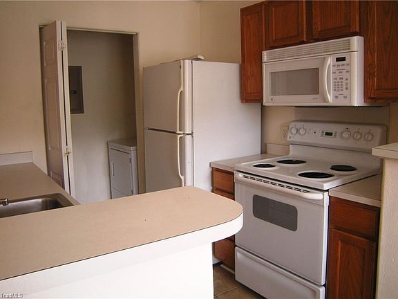 Great feeling of security on the third level. Open floor plan with living area, kitchen, and breakfast altogether. The spacious master has a walk-in closet, private bath, and NEW carpet. All kitchen appliances remain as well as the washer and dryer. The sunny balcony has a convenient storage closet. Enjoy the neighborhood pool. Super conveniently located in downtown Kernersville near churches, restaurants, parks, and major highways to all triad cities.