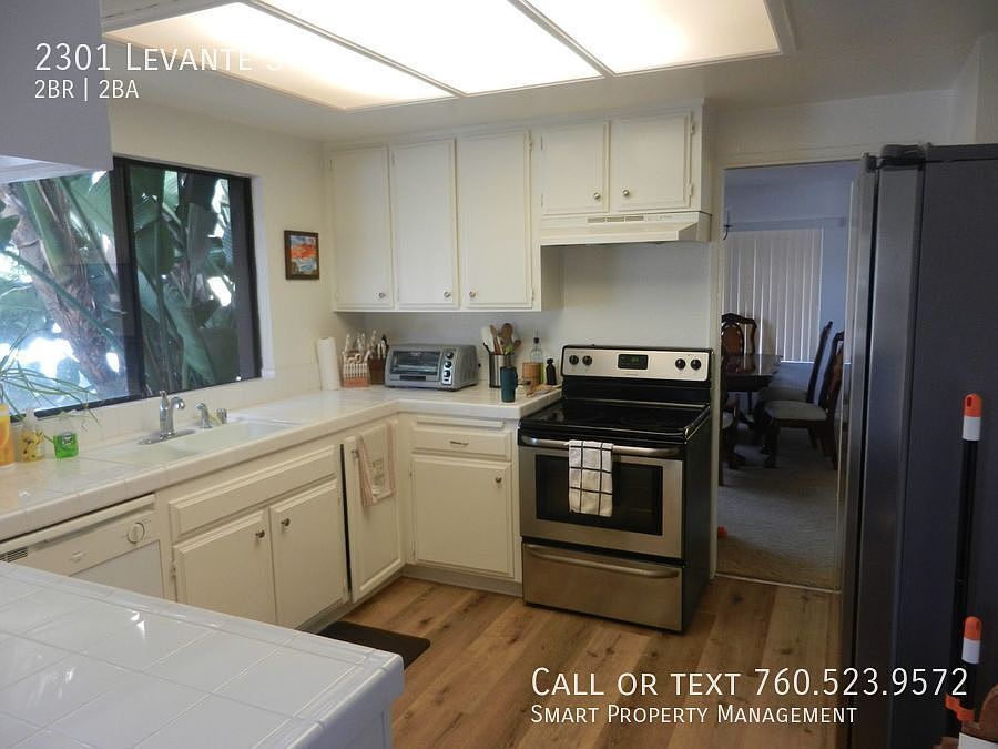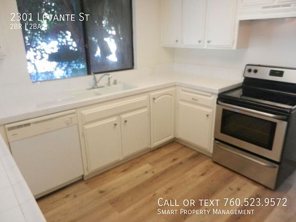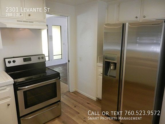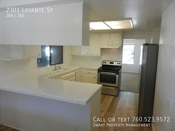 2301 Levante Carlsbad CA 92009 Charming 2 Bedroom + office or den/ 2 Bathroom/ Single story home with 1 car Garage. Great location close to shopping and schools and El Camino Real. Over size 1 car garage. Kitchen with tile counters and breakfast nook. Large family room with fireplace. Covered patio in private backyard. Pets OK with owner and home owner's insurance approval and additional deposit/rent. Thanks for your interest! This Property Proudly Managed By Smart Property Management and Kerrigan Homes