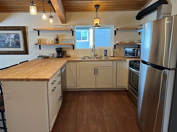 Experience the Alaskan lifestyle in this beautifully renovated, fully furnished log home! This spacious property offers high ceilings, abundant natural light, and all the modern amenities needed for comfortable living. Featuring 2 large bedrooms, 2 full bathrooms, and a fully appointed kitchen, this home is move-in ready with everything you need. Located in a prime Anchorage neighborhood, you'll enjoy easy access to parks, bike trails, and a variety of great restaurants. The airport is just 5 minutes away, and local hospitals are within 10 minutes, making this home ideal for both convenience and leisure. With all utilities included, this home provides hassle-free living. Two parking spaces are available right in front, and a large backyard gives you the perfect outdoor space to relax and enjoy the long Alaskan summer days. No pets, no smoking. Owner pays utilities
