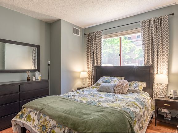 Bright, South-facing unit with large, quiet patio at the Emerson House! Open floor plan with hardwoods, granite, stainless and fresh paint. Living room opens to peaceful, tree-lined patio perfect for al fresco dining. W/D in unit. Garage parking. Extra storage unit. On-site concierge. Gracious rooftop terrace with soaring views. Blocks from Dupont Circle and Rock Creek Park.