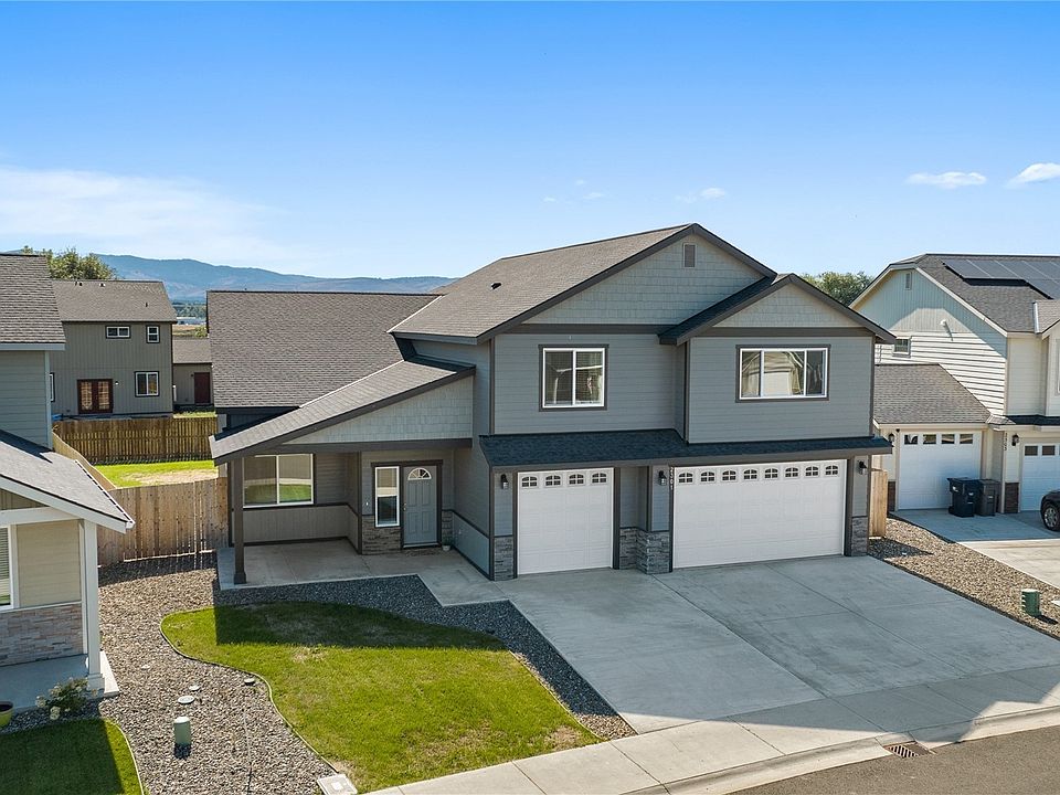 You CAN NOT find this much space at this price anywhere else in E-burg! This almost-new gem offers 3336 SF of living space w/the best floorplan! Kitchen w/granite countertops & tons of counter space! Kitchen is surrounded by the great rm & dining rm + an additional livg rm - space for every activity & occasion! One main floor bedrm w/nearby ¾ bath & 4 upstairs spacious bedrms! Thoughtfully designed w/an upstairs laundry rm for ultimate convenience. Lge Primary bedrm w/full bath! There is even a view of the southern mountains! Park your vehicles & more in the 3-car garage. Outside, a fenced backyard ensures privacy & security, making it perfect for gatherings & playtime. Convenient to I-90, Schools & Downtown - Your forever home awaits!