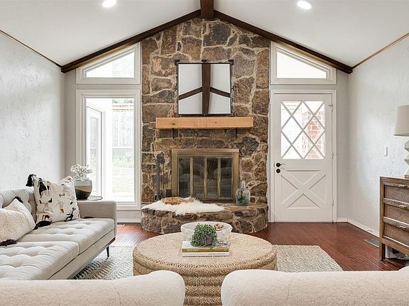 Settle into this charming mid-century-style home and watch the OAK entertainment destination come to life this fall! With 3 bedrooms and 2.5 bathrooms, this corner lot encompasses all the right features with unique flair. Updates include fresh paint, new carpet, and meticulous maintenance and care throughout. Walk in the front door from NW 45th Street onto the bamboo wood flooring to find a beautiful wood-burning stone fireplace and a vast living area. The kitchen features modern updates and stainless steel appliances leading into a formal dining room or office/bonus room. The primary bedroom includes a large walk-in closet and an en suite bath. The backyard on this property is an urban oasis! It features a large covered patio and an outdoor patio with a built-in fire pit. This home includes new spray foam insulation and utility costs are historically low. Don't miss your chance to live five blocks from entertainment and restaurants at OAK and 5 minutes from I-44 in the heart of OKC.