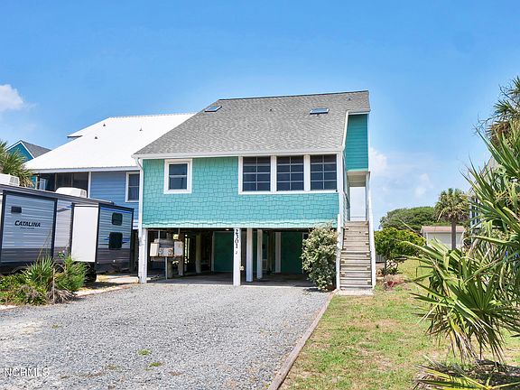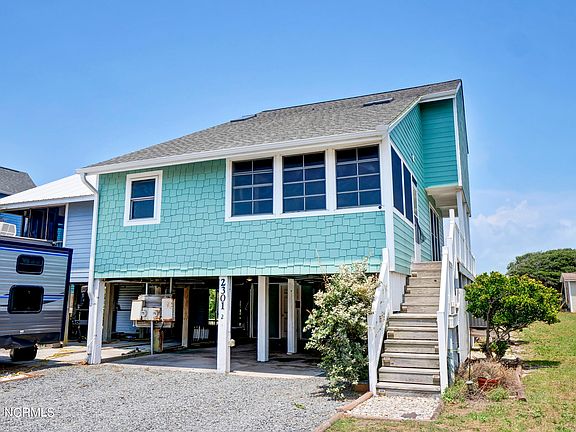 Marketing/Public Remarks: Welcome to North Topsail Shores, this second-row home boasts both ocean AND Intracoastal views. This is the perfect property to use as either a vacation home for you and your family or as a vacation rental for income purposes... or as a combination of both! It's a turn-key operation - completely furnished and accessorized. Inside you will find smooth ceilings, luxury vinyl flooring, an updated kitchen with quartz counter tops, stainless steel appliances, under cabinet lighting, plenty of storage space - and views of the Intracoastal waterway from the kitchen sink. The spacious living room has a stone-veneered corner fireplace, and 9-foot sliding door leading out to a wrap-around deck with roll-out awning. The main living area has a large bedroom and full bath. The second floor has 2 additional bedrooms, both with Intracoastal views, a laundry area, and another full bath. The upstairs bathroom has a large linen closet, dual vanity, heated towel rack, a large, tiled shower, and a wonderful skylight to brighten the room. Outside you will find a fenced backyard, a large deck (perfect for relaxing after a day of playing in the water). Underneath the home there is a hot and cold outdoor shower and two wired storage rooms - in addition to the 2 parking spaces. This property is in great condition and is ready for immediate use. Just fill the beach wagon with toys, towels, and a sun-shade, and roll it across the street to the beach for a day in the waves!