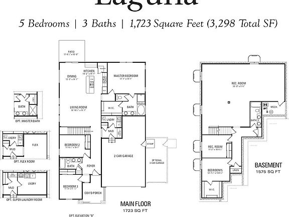 The Laguna by Horizon View Homes features a Main Level Master with Walk in Closet & 5-Piece Bath, Gourmet Kitchen w/ Island, Pantry.. Wood Flooring in Entry, Great Room, Dining Room & Kitchen, 9 Ft. Full Finished Basement w/ 2 More Bedrooms, 3 Car Garage.