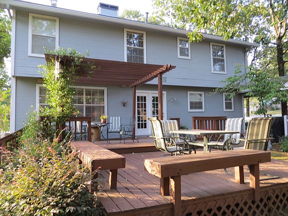 Cute traditional home on corner lot. Two car garage. Mature trees on large lot. 4 bedrooms all upstairs. Living room has wood burning fireplace. Big enough to divide into two spaces. Half bath downstairs. Eat-in kitchen is perfect layout with natural light from french doors that open to back deck. Also has island. Tons of cabinets and storage. Gas stove. Formal dining area off front entry. Master has large walk in closet, extra large space and bath connected. AC unit replaced in 2019. Don't miss 3D tour.