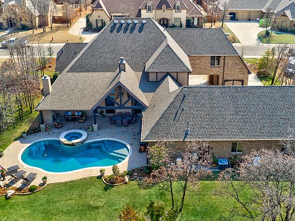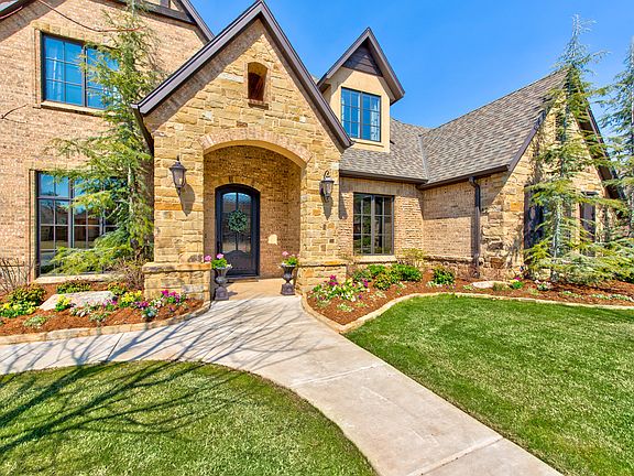 Elegant 5 Bedroom Transitional in the prestigious gated community of White Oak at Iron Horse Ranch. Hand-scraped hickory floors, beamed/vaulted ceiling, arched doorways, floor-to-ceiling fireplace, custom finishes, detailed ironwork & a neutral pallet = the perfect blend of luxury & comfort. Stunning Chef's Kitchen w/Thermador Professional Series Appliances & 9' Island is THE focal point of this home. SO much storage, big Pantry, Laundry Room w/space to organize & create! Formal Dining Rm, Office with builtins & coffered celling. Oversized windows offer exceptional views of the Saltwater Pool & Spa. Professionally landscaped, two covered seating areas, outdoor kitchen, fireplace & a half-bath for extra convenience! First Floor Master's retreat, Spa Bath & 171SqFt of closet space. Guest Suite downstairs. Upstairs: Bonus Room & 3 more large bedrooms each with access to a private bath. In-ground storm shelter, 4 Garage Bays. Community Pool, Playground, Walking Paths, Ponds & Fit Center.
