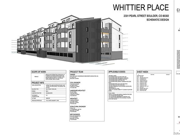 HUGE PRICE REDUCTION. MUST BE SOLD BY THE END OF THE YEAR! Nestled in the heart of Boulder's vibrant Pearl Street. Say hello to the future as we present to you an exclusive opportunity to own a one-bedroom penthouse end unit condo in the highly anticipated Whittier Place Condos. This remarkable property is not just a home; it's a chance to craft your own piece of paradise in a brand-new building. Imagine waking up every morning enjoying coffee overlooking the action on Pearl Street from your private covered balcony penthouse perch. This top floor end unit offers unparalleled privacy and tranquility in the bustling heart of Boulder. But what truly sets this penthouse apart is the opportunity to be part of the design process. Purchase now, and you'll have the unique privilege of selecting the finishes that will make this space uniquely yours. Tailor the color palette, flooring, fixtures, and more to match your personal style and preferences. Whittier Place Condos have been an integral part of Boulder's landscape for many years. Sadly, a fire in 2021 left a void in this beloved community. But now, they are being resurrected, rebuilt from the ground up, offering a rare chance to enjoy a brand-new condo experience in this iconic location. Centrally located on Pearl Street, you'll find yourself just steps away from Boulder's finest dining, shopping, and cultural attractions. Stroll down to the world-famous Pearl Street Mall for a night out or a leisurely brunch, explore the nearby hiking trails and parks, or simply relax on your private balcony as you take in the vibrant energy of this remarkable city. Contact me to learn more about this once-in-a-lifetime opportunity to own a brand-new penthouse condo in the heart of Boulder. Your future begins here on Pearl Street!