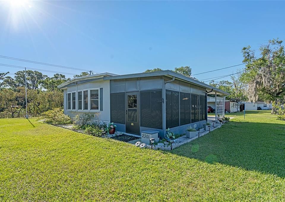 Welcome Home to a fully furnished home on a large lot! This charming manufactured home is the perfect place to escape for the winter, earn extra income as a vacation property, or enjoy as your permanent residence. It's located on over a 1/4 acre, has no HOA or lot rent (you would own the land), and is a short drive to the Polk Parkway, restaurants, and shops. You'll love the peace of mind that comes from knowing your home was completely re-piped this year, the electrical panel was recently replaced, the insulated windows and doors were added in 2023, and the heat pump was installed in 2008. Relax in your large, insulated Florida room that offers electricity, removable windows, and retractable shades. The adorable kitchen offers lots of cabinets, a closet pantry, a pass-through window, and a pretty backsplash while the dining room features built-in shelves, and a mini bay window. The living room is light and bright with a mini bay window and access to a 6.5 x 5.5 (approx) hallway that leads to two comfortable bedrooms and baths. Outside, you will find a new ramp leading to the front door (which can be removed), a shed with a washer and dryer, and a flag pole. What a great place to call home or have as an investment! *Multiple Offers Received! Please send your highest and best by noon on Wednesday, 5/15.*