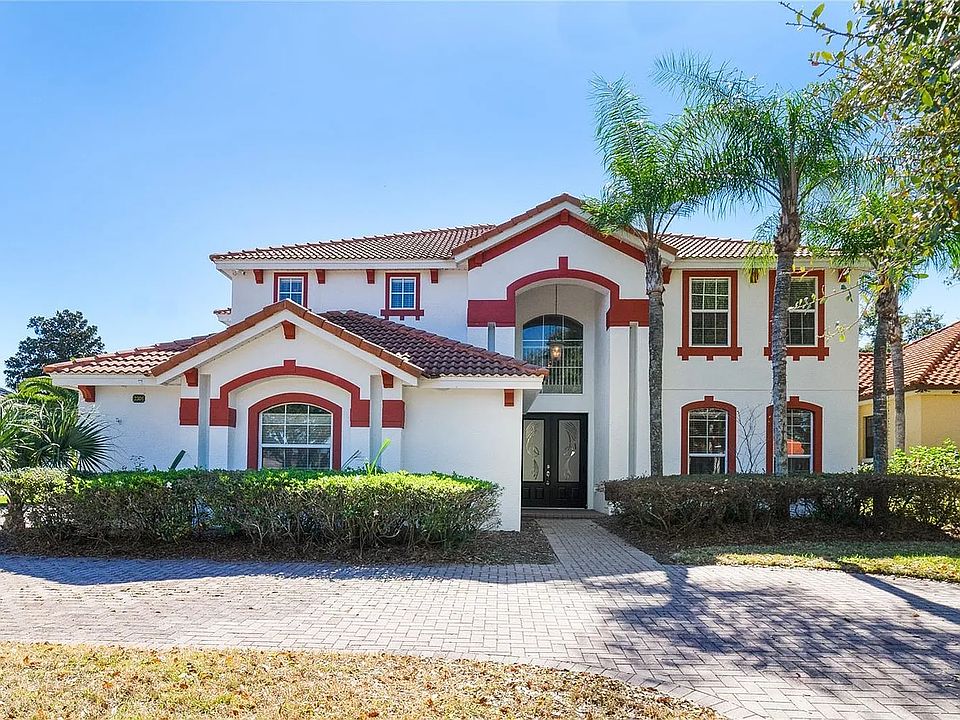 This upgraded 5-bedroom, 4-bathroom Mediterranean-style home in the gated Palma Vista golf community offers 3,617 sq ft of luxury living. Enjoy a gourmet kitchen with granite countertops, stainless steel appliances, and open-concept design flowing into a spacious family room. Relax in the private screened-in pool and spa with golf course views, or unwind in the upstairs master suite with balcony and spa-like bath. Located in Orlando's desirable Metro West area, just minutes to dining, shopping, theme parks, Valencia College, and major highways. Features include a first-floor bedroom/office, media room, 3-car garage, and beautifully landscaped yard. Stunning 5-Bed, 4-Bath Mediterranean Pool Home in Gated Palma Vista Golf Community Welcome to luxury living in the highly sought-after Metro West area! This beautiful 3,617 sq ft Mediterranean-style home offers 5 bedrooms and 4 full bathrooms, designed for both elegance and comfort. Inside, you'll find a bright foyer with soaring ceilings, formal dining and living rooms, and a gourmet kitchen with stainless steel appliances, granite countertops, and an open layout to the family room. A first-floor bedroom/office offers pool access for flexible living. The expansive master suite features a private balcony overlooking the golf course, a luxurious en-suite bath, and access to a media room. Step outside to your private screened-in pool and spa with serene golf course views. The home sits on a 0.32-acre lot with a circular driveway and 3-car garage, within the secure gates of Palma Vista. Property Highlights: 5 bedrooms, 4 full bathrooms 3,617 sq ft of living space Gourmet kitchen with stainless steel appliances and granite counters Private screened-in pool and spa Golf course frontage with stunning views 3-car garage and circular driveway First-floor bedroom/office with pool access Expansive master suite with balcony and spa-like bath Gated community with beautifully maintained grounds Conveniently located near dining, shopping, theme parks, major highways, and top-rated schools. Don't miss the opportunity to make this exquisite property your next home!
