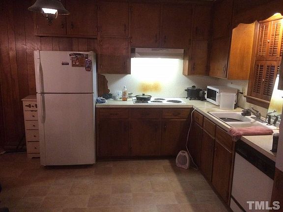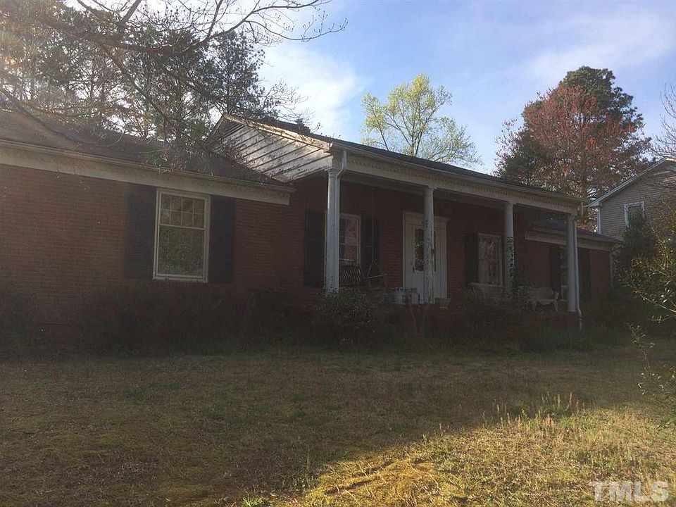 All brick home on a .5 ac Lot with lots of Azaleas, screen porch. Bonus could be a Master Bedroom, inlaw, or apartment because it has a bathroom & private entrance, yet on other side of house is 3 bedrooms & 2 bathrooms. Living room, with a masonry fireplace, & open to Dining room. Eat n Kitchen slightly open to the Family room, with a fireplace wood burning insert. Maybe hardwood under carpet. Home is in need of updating & repairs, being sold as is. Only 30 minutes to Cary, about a mile from US 1.