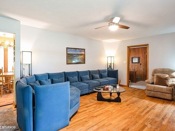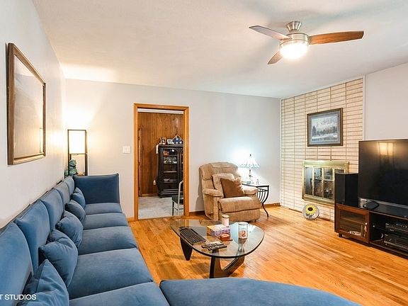 Welcome home to this mid century ranch with maintenance free exterior with steel siding and brick front with all the unique characteristics of the 50's! Hardwood floors run through the living room with brick fireplace and down the hall is 3 bedrooms with a full bath. A eat in the kitchen with all appliances includee beautiful custom built cabinets. An open staircase leads you to a a lower level second living area with bath. The outdoors is beautifully maintained with a patio and screened in porch which is a perfect place to entertain! Make this your next home! Roof- Approx 5 years old, Fence- Approx 2 years old, Windows- mostly updated.