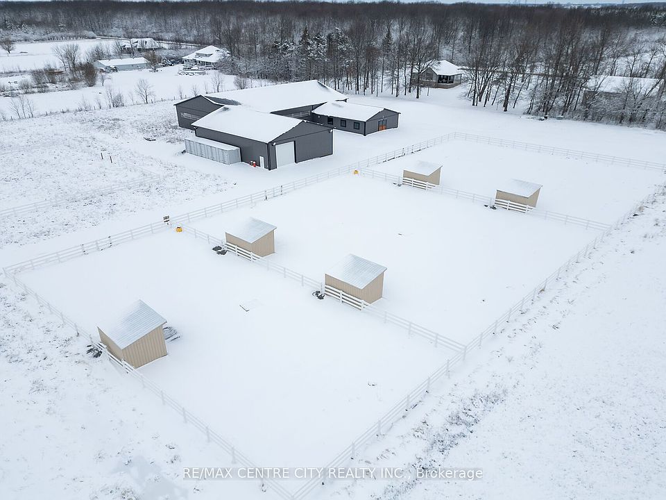 This remarkable 27+ acre Niagara Estate offers TWO newly built luxury homes and a stunning shop and horse facility. An exceptional opportunity for multigenerational living or a high-potential investment. The first of the two beautifully appointed homes is a luxury 1290sq ft bungalow with 2+1 bedrooms and 2+1 bathrooms, high-quality finishes, a durable metal roof, a heated 1-car garage, and a fully finished "daylight" basement with a separate entry. The landscape around this home is ready for your personal touch. The second residence is a landscaped 5-year-old, 2,050 sqft. bungalow with attached garage offering an open concept 3 bedrooms, 2+1 bathrooms and featuring hardwood floors, a finished basement with kitchenette and separate entry. The equestrian amenities here are all BRAND NEW and thoughtfully designed which include a 12000sqft dream equestrian complex with six 12x12' gorgeous stalls, a wash bay, a connected 60x100' indoor riding arena, three gravel-based paddocks sharing five run-in shelters and heated water bowls, and a prepared setup for a 100' x 200' outdoor riding arena. A 48x64' shop makes up a whole wing of this complex hosting an additional four 12x10' metal stalls with direct access to the arena with a 14' roll up door. There is also a 40x50' insulated and heated shop with a 16x12' roll-up door, perfect for equipment storage, business operations, or hobby use. Each building on this property is serviced with natural gas and the two homes have completely separate services which may provide a buyer with the potential for severance (buyers due diligence). Indeed, this is a must-see to truly appreciate all the high-end features and finishes. Please connect with a realtor for a more detailed feature sheet, or to book a tour.