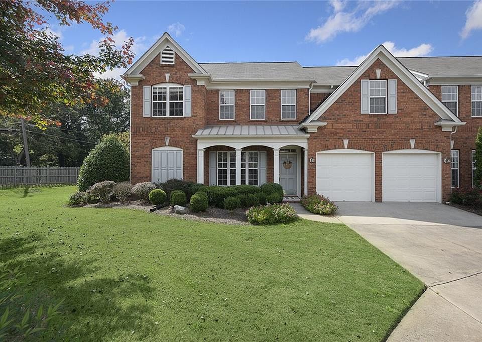 Welcome home to this rare find in the heart of East Cobb, a four-sided brick end unit with the primary bedroom on the main level. This lovely enclave of homes is the best kept secret in Marietta! Very conveniently located, minutes from I-75 and the Marietta Square and right down the street from all the best that East Cobb has to offer. Immaculately maintained and updated by the original owner, these homes are paired units, so they feel and live like a detached home, with the convenience and low maintenance of a townhome. Natural light floods the spacious rooms, the main level is very open with soaring ceilings. The entry and great room are open to the second floor. The primary bedroom is nestled away from guests with a nook to buffer between the bedroom and living spaces. The main level has been updated with wide plank wood flooring that is just beautiful. The fireside great room and kitchen are much larger than most. Upstairs are two roomy bedrooms, a great open loft area overlooking the great room, a shared bath with double vanities and separate sink and bathing rooms, large closets, and fabulous storage. This stepless home has everything needed on the main level, including a dining room that would make a fabulous office. Updates include flooring, lighting, appliances, landscaping, and gas grill line to patio. The icing on the cake is a lovely back patio and garden, enclosed by a wood privacy fence. Just outside the gate is massive green space, another rare find in an East Cobb townhome community. This home is located on a cul-de-sac and is surrounded by green space, including the front, side and back “yards”. This home is an amazing value, if you have been looking for a while, you will be thrilled to find this gem!