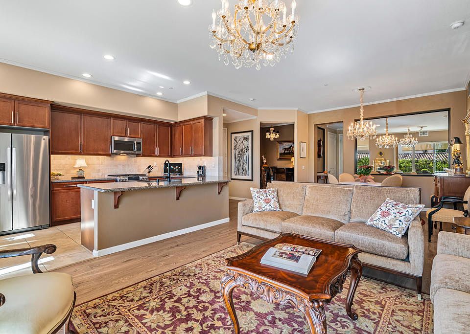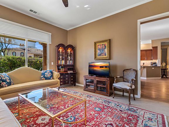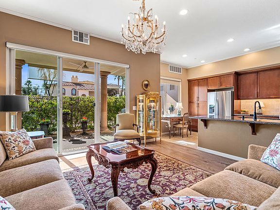 Welcome to Villa Portofino, a premier 55+ community in the heart of Palm Desert. This beautifully maintained 2-bedroom, 2-bath residence offers approximately 1,492 sq. ft. of comfortable living space with a direct-access two car garage, giving it the feel of a single-family home. The spacious great room, generous primary suite, and large walk-in closet provide an open and inviting layout.Enjoy an oversized south-facing patio that brings in natural light while remaining pleasantly shaded--perfect for relaxing or entertaining. The home features numerous upgrades, including pristine epoxy flooring in the garage, crown molding, newer stainless-steel appliances, wood-plank flooring, and owned solar panels maintained and cleaned by the HOA. Patio furniture and barbecue are included with the sale. Villa Portofino amenities include a 30,000 sq. ft. clubhouse with a movie theater, bistro, lap pool, spa, library, concierge services, fitness center, yoga studio, on-site management, billiards room, card room, and conference facilities. A full calendar of monthly activities offers everything from fitness sessions to social events.All of this is conveniently located just minutes from El Paseo, Eisenhower Health, Whole Foods, The McCallum Theatre, and a wide selection of top-rated restaurants.Sellers have already packed and can accommodate those seeking a quick escrow.