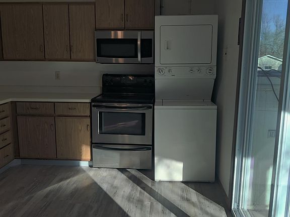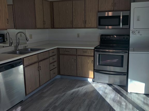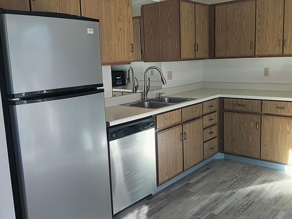 2 bedroom 1 bath upper unit apartment. with a walk out deck. large two car garage. Freshly remodeled. New Java colored cabinets being installed on Saturday March 6th. Granite counter tops installed later next week. back splash will be installed after granite counter tops go in. new tub and tile shower installed the week of the 8th. Tenant responsible for all utilities and snow removal and lawn care