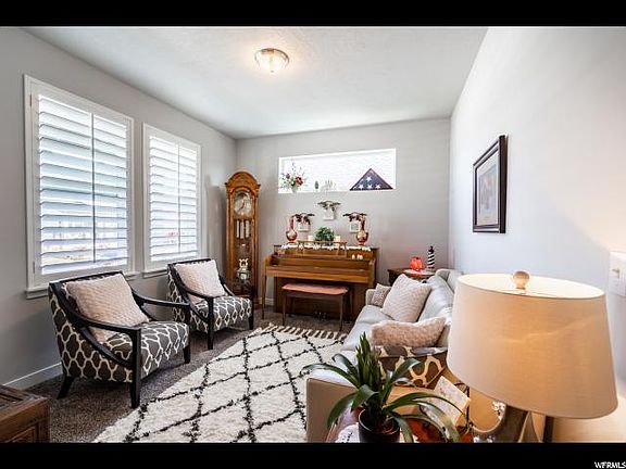 Bright open floor plan with gorgeous mountain views! 100% finished home in a quiet, friendly neighborhood that is close to schools. Kitchen includes granite countertops, soft-close cabinets, stainless steel appliances and lots of natural light throughout. 6 bedrooms (4 have walk-in closets), 4 full bathrooms and two gas fireplaces. Fully fenced backyard with automatic sprinklers and a trex deck to enjoy those spectacular mountain views. Custom plantation shutters, overhead storage space in the garage and high-end deluxe eco water softener/conditioner. Immaculate and better than brand new!