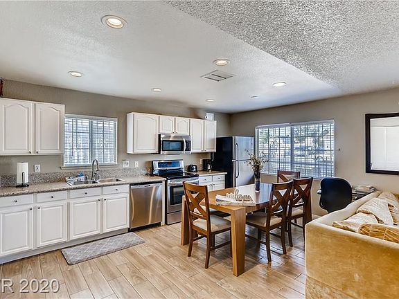 Completely remodeled home. Open floor plan with new cabinets, new granite counters, wood tile floors, carpet in bedrooms, painted inside and out. Updated showers, sinks and faucets, new lighting, Stainless steal appliances and kitchen sink. Large lot. Brand new A/C unit. Strip views from back yard! Growing neighborhood that is very quiet, charter school a few doors down. No backyard neighbors as the land is owned by the school district. Home Back on the Market due to buyer not qualifying for loan.