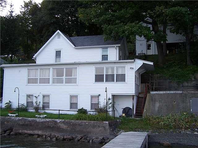 Colonial style cottage with all season heating and spacious living and dining areas - partially finished walkout basement with 2 bedrooms -92' lakefront natural beach and seawall for grassy yard - 3 bay garage and lots of parking -Public water and sewer - 2nd full bath in garage - vinyl siding on garage and cottage! Near Keuka College!