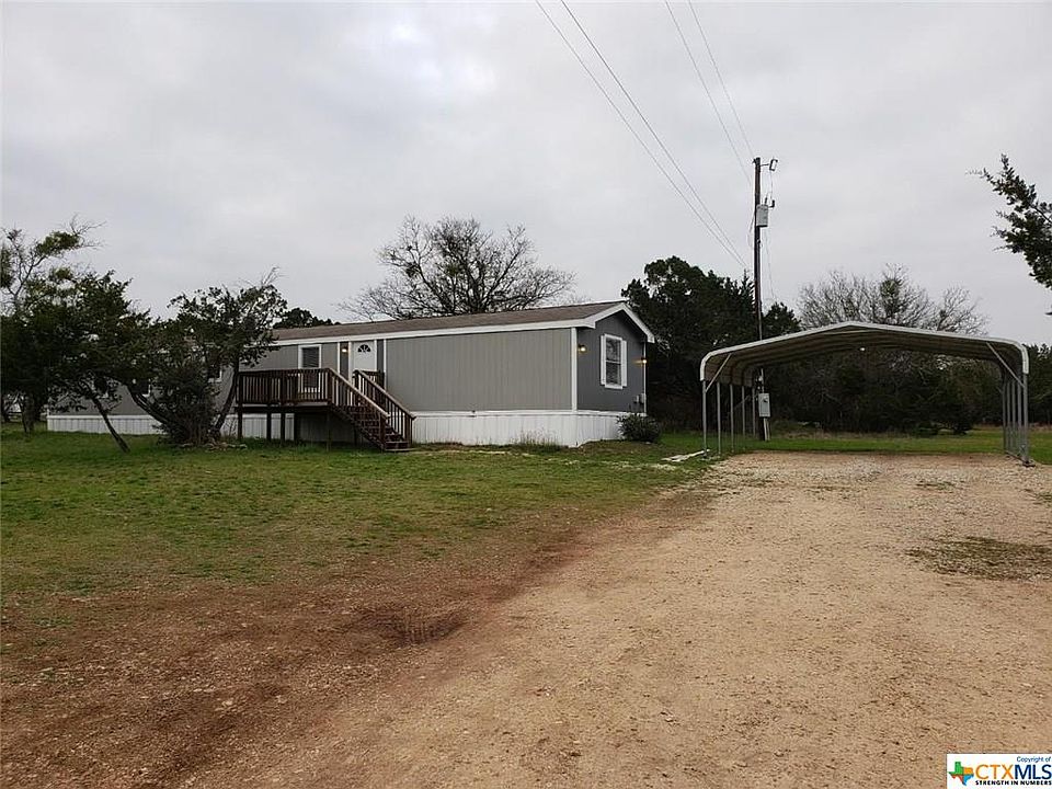 Manufactured home on about 2 1/2 acres of land , great location, tile floors, carpet, electric gate, 2 car carport and more. Septic on site and water well so no water bill. Refrigerator included. Western portion of property that is fenced off separately and that has a metal building is not part of lease agreement. This property has a separate tenant. Mobile home tenant will not access the water well building located on the far eastern corner of the property.