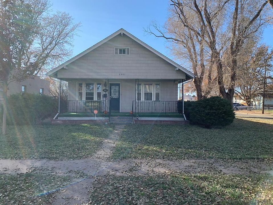 Spacious 3 bed, 1 bath home on the Southside of Pueblo. This corner lot has loads to offer. Hardwood floors in all the bedrooms, large living room with wood burning stove, central air! Freshly painted Kitchen & 2 of the bedrooms. Laundry has been relocated to upstairs, with hook ups still in partial Basement. New water line installed last year. Unfinished partial basement leaves potential for what you may need the extra space for. Deck for those BBQ or just a place to relax! Fenced in back yard with1 car detached garage.