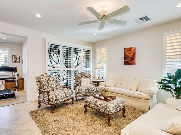 This beautiful 2BD/2BA plus den home is just perfect for you! Step inside to find numerous upgrades such as oversized tile, plantation shutters, ceiling fans throughout, water softener, SS appliances, upgraded countertops in kitchen and bath, and many more. You will enjoy the energy efficient radiant barrier, sunscreens and fully PAID SOLAR lease! If that isn't enough, step out to the back patio featuring pristine pavers and a lovely pergola. Call for your private showing today!