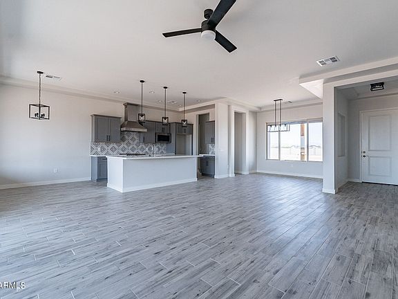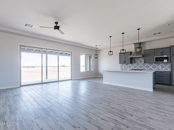 4 bedrooms 3 car garage on 1.4 acres with room for your RV Horses UTVs! Just off a paved road with NO HOA! Only a short drive to Surprise and Wickenburg w/ plenty of room to build a horse facility. It has designer touches throughout including quartz countertops, soft close cabinets, under cabinet lighting, stainless steel appliances, tiled backsplash, large center island, walk-in pantry, and range hood. Eat-in kitchen, breakfast bar, dining room off the great room, large sliding glass door, 10' ceilings 8' doors. Split floor plan master bedroom has 2 walk-in closets, a large tiled shower w/ double sinks and an exit to the patio. New home Ready for move in!