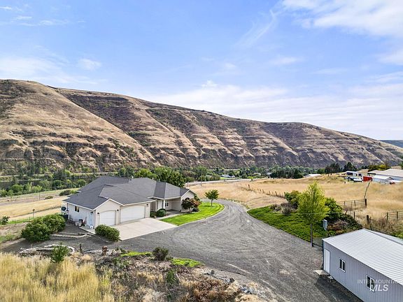 Imagine waking up to this view every morning and watching the sun set at the end of the day. This beautiful home on 23 acres overlooking the Clearwater River has much to offer. Everything for everyday living is on the main level including the laundry room and the master suite. The lower level provides additional bedrooms, living space, wet bar and lots of storage. Outside you'll find a shop and plenty of space for a garden and RV parking. A year- round creek flows through the property and raising livestock is an option. County zoning allows for splitting property into 5 acre lots if desired. Most of the acreage around the home has been baled for grass hay in years past. Turkeys, eagles, hawks, osprey and deer are common sightings. Rivaura Winery and boater access to the river renowned for steelhead and chinook salmon fishing are just a couple of miles away and Lewiston is a quick 15 minute drive. Inquire about a rental property on an adjacent parcel, a 3/2 1515sf dbl wide MH on a foundation.