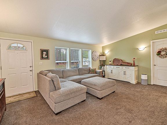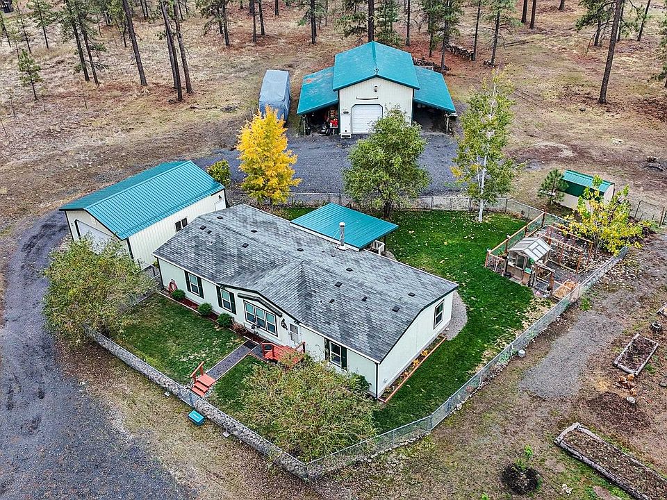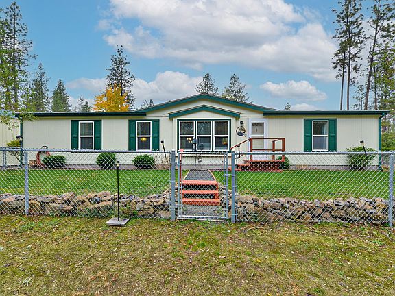 Amazing manufactured home on over 5 acres near Long Lake. This move in ready 3 bed/2 bath property is the peaceful retreat you've been waiting for. Kitchen has plenty of counter space, island and pantry. Roomy primary bedroom with large full bathroom includes double sinks, garden tub and walk in closet. The covered deck allows for enjoying the beautiful quiet surroundings in any weather. Includes large 24x36 heated shop with loft and 2 lean to's, and a detached 2 car garage with a cold room for all your canning/root cellar storage needs. This beautiful serene country setting includes lots of mature trees, a fully fenced front and back yard, garden area complete with green house, raised beds and orchard with cherry, apple and pear trees! The property line borders vacant Avista land along Long Lake for hiking access.