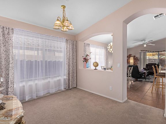 This delightful 4 bedroom 2 bathroom home offers a blend of comfort and convenience, nestled in the highly sought out Sundance community. This spacious layout includes a generous formal dining room, perfect for hosting family gatherings and dinner parties. The primary suite is a true retreat, featuring a walk-in closet designed to accommodate all your wardrobe needs. Enjoy the outdoors with an extended patio for relaxing, entertaining guests, or watching those beautiful Arizona sunsets. Two lovely parks are within walking distance. Don't miss this opportunity to make this wonderful property yours!