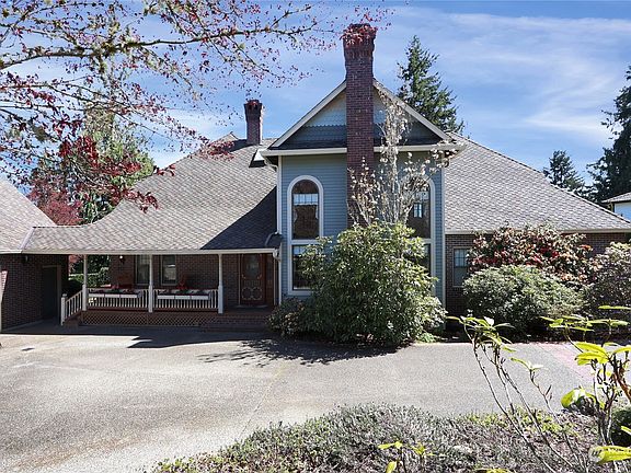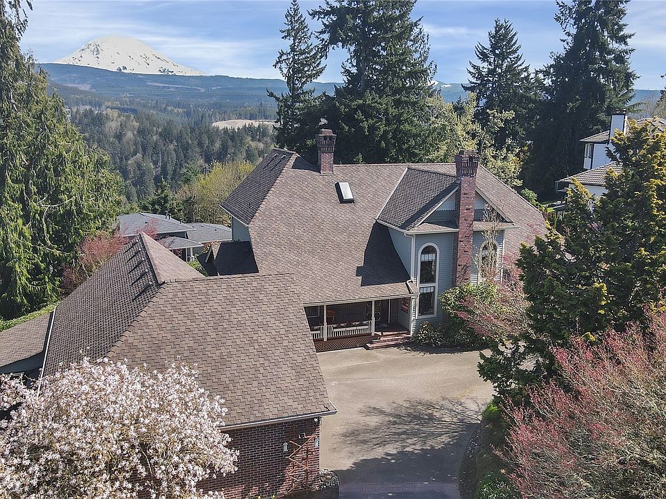 NEW PRICE!!! BREATHTAKING Mt. Rainier + River views w/STUNNING quality. Primary bed on Main. Beautiful grounds. AMAZING craftsmanship! Formal Livingrm w/main floor to 2nd floor stone fireplace, beautiful doors & millwork. Primary Suite boasts Bath w/no lip shower, floating tub, WI closet, PLUS a barn door to Bonusrm w/closet. NEW Chef's delight kitchen w/stainless LG appliances, 2 pantries, gorgeous cabinets & quartz counters. Diningrm w/wood stove & VIEWS! Patio off Kit. 2nd floor Bedrooms each w/own bath & a BIG Familyrm w/GORGEOUS views & deck. Doors off Livingrm & Primary's Bonusroom lead to wraparound porch w/VIEWS! Garage Cinema & hidden Speakeasy, workshop/hobby/craftrm & shop. Newer 50 YR Comp roof, A/C, TONS of storage! SEE PICS!