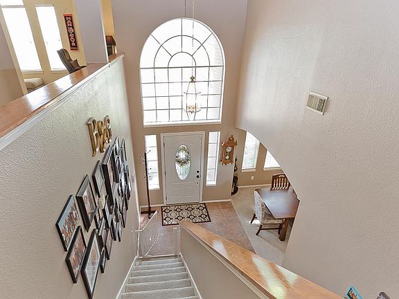 Waterfront home with 3 beds & 2 1/2 baths. Grand entry with lots of windows. Arched entryways into formal dining room. Updated kitchen with granite counters, glass tile backsplash, tile flooring & bronze fixtures. Living room with vaulted ceilings, F/P with windows on each side overlooking the lake with fountain. Master suite with tray ceiling & two windows with beautiful lake views. Master bath features double sinks, soaker tub & walk-in closet. Backyard with large palm trees & gate to lake.