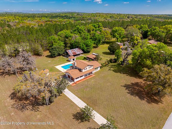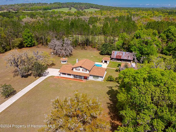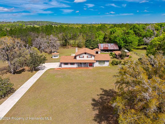 Country living at it's best. Located approximately 5 miles north of Brooksville on a dead end road with a canopy of mature oaks and limited traffic. Come and enjoy the wildlife and keep an eye out for wild turkey and white tailed deer. The rear of the property is almost completely fenced with the exception of a small section on the east side of the home. This two story home has a large pool in the rear providing an opportunity to relax or host a party for your friends. The large picture window in the living room provides a beautiful unobstructed view of the rolling landscape. The home includes a pole barn with a center height of 14' 6'' which is a sufficient height for most motor homes. A 12' x 12' barbeque pit is perfect for cook outs. The roof was replaced 5/6/2020 which provides additional peach of mind. The home comes with 1 year buyer protection of ''shield complete'