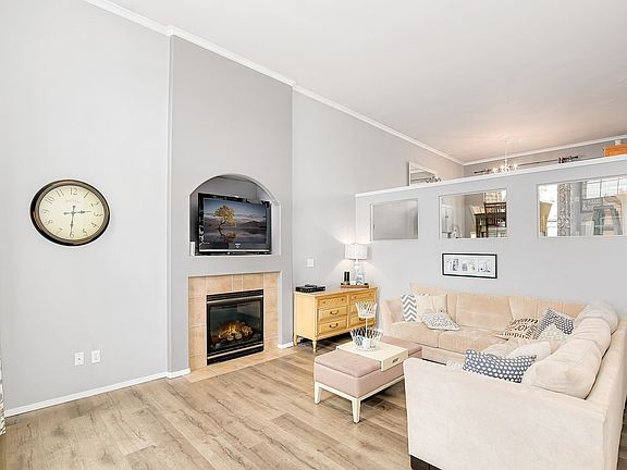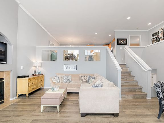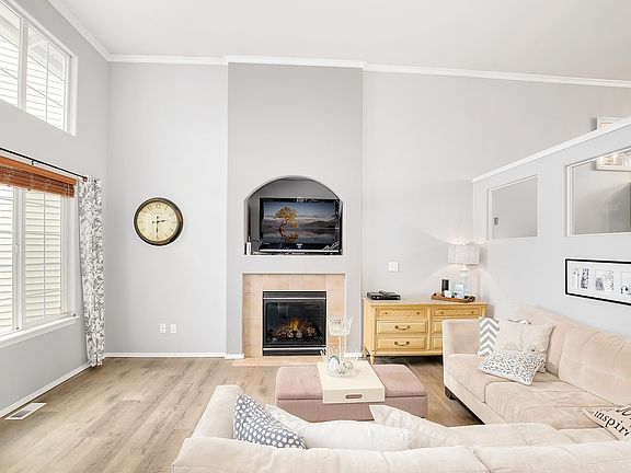 Bright and natural light in main floor living rm complete w/ gas fireplace. Open kitchen & dining w/ sliding doors to large back deck. Kitchen has SS apps, plenty of counter & cabinet space, tile backsplash, & island w/ bar seating. Master bdr includes large closet & bath. 2 additional bdrs next to full bath & utility rm. Finished lower lvl features 2 large bdr, full bath & extra family rm w/ fireplace & sliding doors to covered back patio & fully fenced yard. Close to schools, shopping & freeways