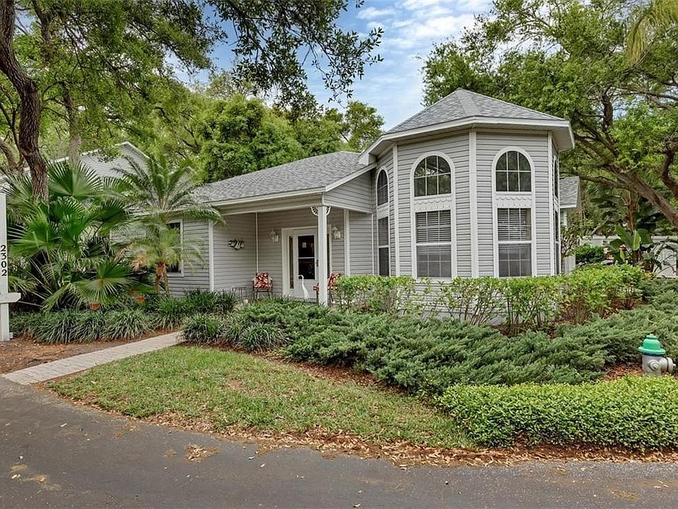 Cape Town Village is a private community of 42 Key West Style homes nestled among luscious oaks right in the center of every amenity you need in your everyday life and only six miles to our beautiful beaches of Anna Maria Island. This meticulous home offers three bedrooms and two baths and used to be the Cape Mary model home in the community offering extras like built in cabinets, trims, and other notable features. The third bedroom was originally used as the sales office and offers French doors, custom desk, computer workstation, file drawers and lighted bookshelves. The octogen shape living room with its extra high ceilings and tall windows is cheery and bright and it was a perfect studio for the current owner. The roof and AC system were put in 2017, tankless water heater in 2020. A spacious screened in lanai and open porch under the ancient oaks makes this home feel like a retreat. The low monthly association of $275 covers your internet, basic cable, lawn mowing and trimming, community pool, private roads, manager.